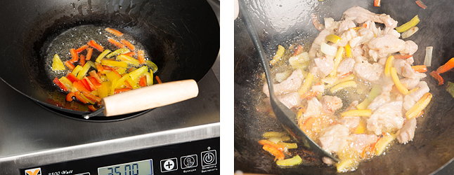 Индукционная плита Airhot IP3500 WOK отлично показала себя при приготовлении свинины по-китайски с фунчозой.