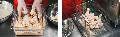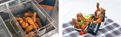 При помощи специальной ручки извлечь корзину, вынуть готовую курицу фри. Продукт готов к подаче.