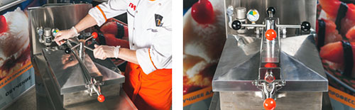 Для этого повернуть вентиль так, чтобы красные шары оказались на одном уровне.