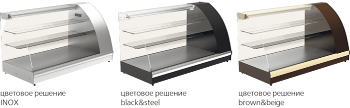 Настольные витрины Арго XL поставляются в трех вариантах: среднетемпературная, тепловая, нейтральная.