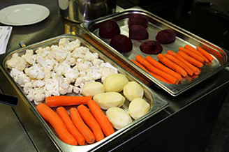 Предварительно все продукты прошли тепловую обработку в пароварке Cleveland до полной готовности