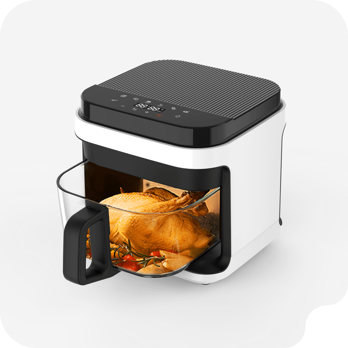 Благодаря технологии 3D-циркуляции горячего воздуха, приготовление возможно без использования масла.