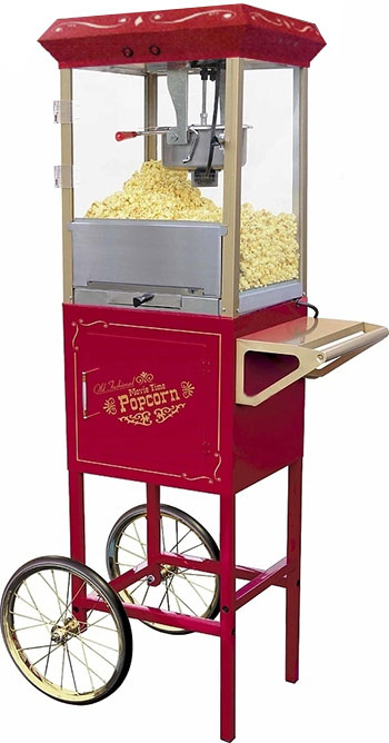 Тележка оснащена 2 колёсами, 2 стойками, ручкой и внутренним отсеком для хранения ингредиентов