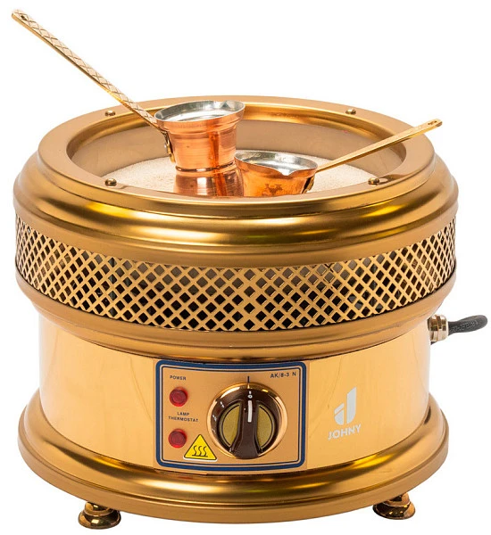 Аппарат Johny AK/8-3 N используется для приготовления «кофе по-восточному». Традиционная кофемашина для профессионального использования, которая существенно разнообразит вашу карту горячих напитков. Позволяет насладиться самым что ни на есть восточным кофе на песке, так называемым «Ховоли».
