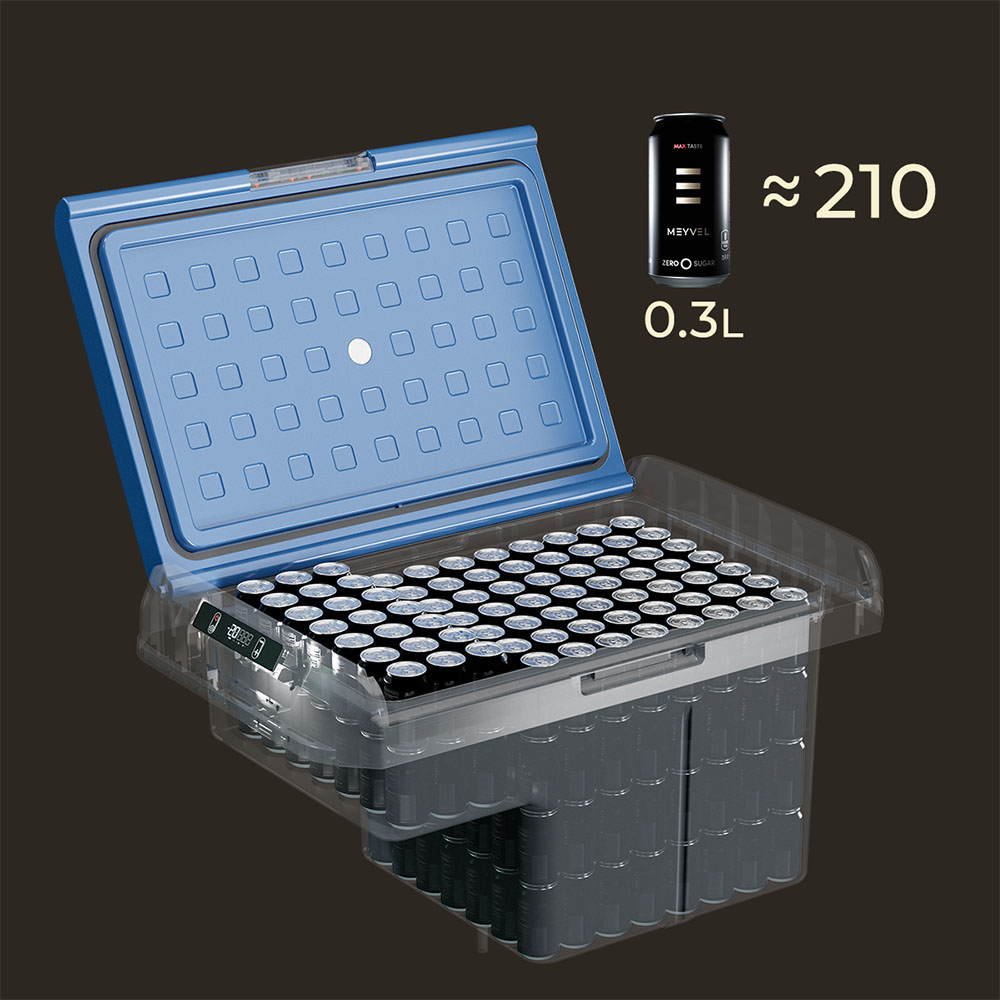 Корпус изготовлен из прочного пластика и прекрасно изолирован благодаря полиуретановой пене высокой плотности. Это гарантирует долгосрочную эксплуатацию и эффективное сохранение температуры. Благодаря компактным размерам холодильник легко разместить в автомобиле или взять его с собой в поход.