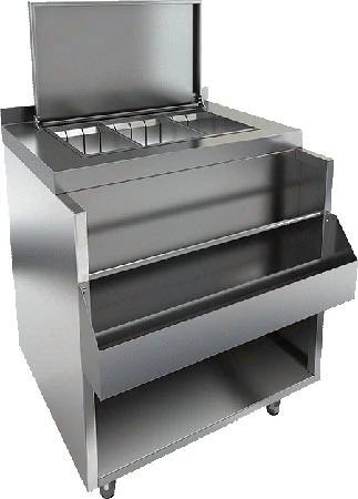 Барная станция Hicold НБМВЛ-9/7БККР с ванной для льда и лотком с дополнительным карманом предназначена для комплектации барных стоек.