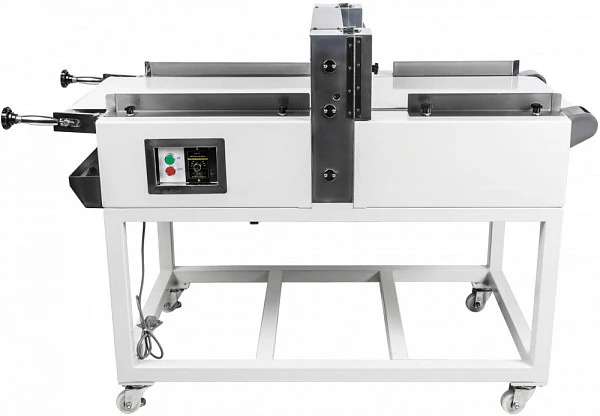 Наличие подающего конвейера для обеспечивающим автоматическую подачу бисквита на блок ножей.
