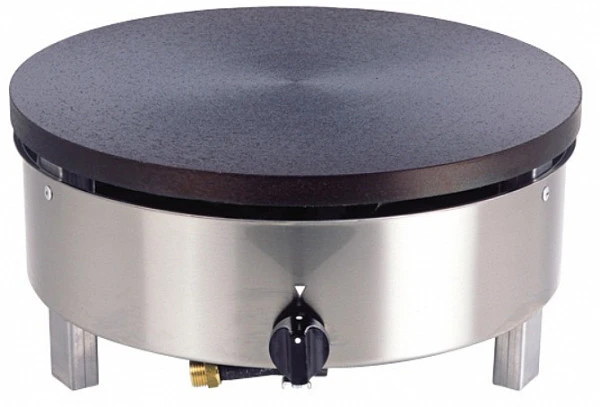 Блинница газовая в круглом корпусе из нержавеющей стали AISI304, с одной чугунной поверхностью диаметром 40 см.