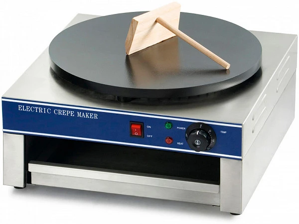 Удобная в использовании панель управления позволяет легко осуществлять регулировку температуры жарочной поверхности блинницы.
