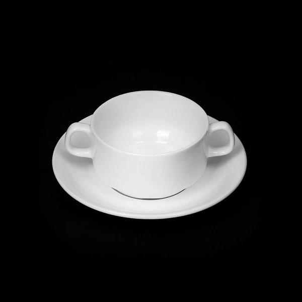 Бульонная пара Lambert 350мл — простая и универсальная посуда для ресторанов, кафе и столовых. Лаконичный неброский дизайн дает возможность использовать эту модель в ресторане и кафе, столовой и гостинице, офисе и кейтеринге.