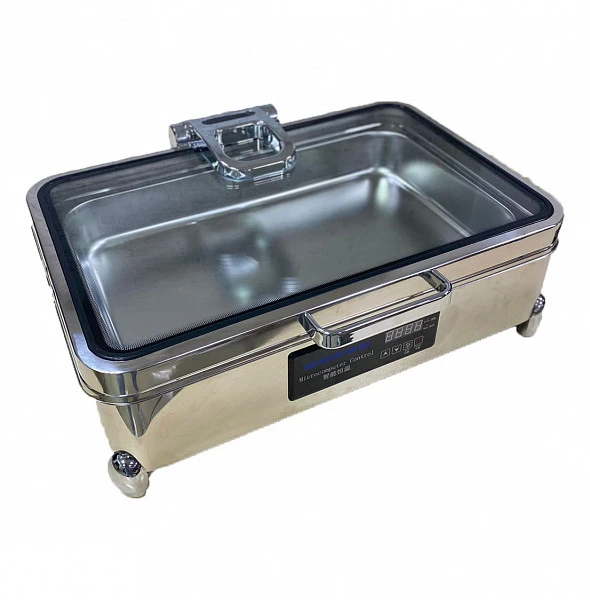 Чафиндиш CuisinAid CD-FSDT-G электрический с термоконтролем используется для организации шведских столов на банкетах, фуршетах, в отелях и ресторанах для сохранения в горячем состоянии различных блюд.