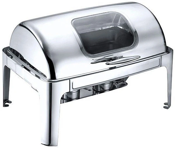 Оборудование отличается небольшими габаритами и малой массой, что облегчает процесс его транспортировки. Это идеальный вариант для кейтеринговых организаций. Чафингдиш производится из качественной нержавейки, которая не способна вступать в химические реакции с продуктами питания и отличается легкостью ухода. Металл не боится перепадов температур и постоянной влажности.