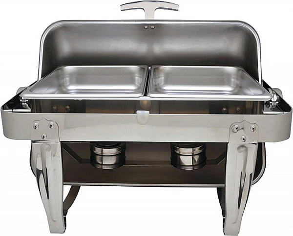 В качестве элементов нагрева используются 2 спиртовые горелки, поэтому данный чафинг-диш удобно использовать в местах, где нет доступа к электросети.