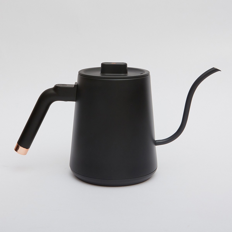 Благодаря устройству носика, вода подается под углом 90 градусов равномерным потоком, что является важным условием для приготовления идеальной чашки кофе. Обладает возможностью настраивать температуру нагрева воды и поддерживать ее. Кнопка удержания температуры расположена сбоку. При долгом нажатии на кнопку происходит переключение между градусами Фаренгейта и градусами Цельсия. Чайник изготовлен из прочной пищевой нержавеющей стали, которая не влияет на вкус воды, и не выделяет вредных веществ даже при высокой температуре. Инновационная крышка с замком обеспечивает хорошую герметизацию и плавное закрывание. Эргономичная ручка из термопластика удобно располагается в руке и предотвращает обжигание.