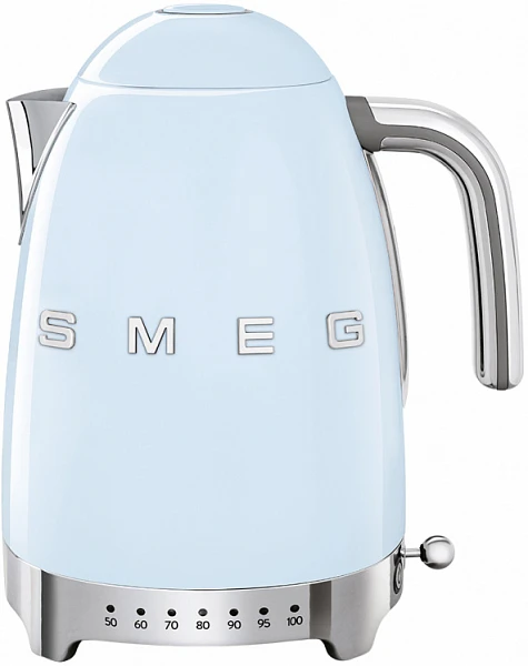Чайник Smeg KLF04PBEU предназначен для быстрого подогрева воды в частных домах и квартирах. Модель выполнена в стиле 50-х годов. Устройство оснащено световыми индикаторами температуры, съемным моющимся фильтром из нержавеющей стали, отделением для хранения шнура в базе и нескользящими ножками для удобной установки на любой поверхности.
