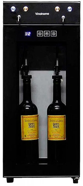 Диспенсер для вина Cavanova CV02VH создает оптимальные условия для сохранения всех вкусовых свойств открытого вина в барах, ресторанах, специализированных магазинах, частных домах или квартирах. В модели используется электронная система управления и термоэлектрическое охлаждение. Диспенсер обеспечивает единую температурную зону, имеет индикацию температуры и удобную светодиодную подсветку. В конструкции устройства предусмотрено одновременное размещение 2 бутылок вина по 0,75 л.