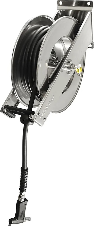 Душирующее устройство Monolith SR 000000002A используется на предприятиях пищевой промышленности и общественного питания для подачи воды в необходимую зону помещения с целью мойки оборудования, пола и рабочих поверхностей. Модель состоит из гибкого шланга с лейкой с прижимной рукояткой и катушки с закрытым корпусом для компактной смотки шланга.