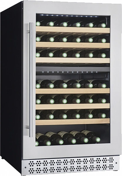 Регулируемый температурный режим нижней камеры от +5°C до +12°C, верхней от 14°C до +20°C позволяет хранить белые, красные вина раздельно.