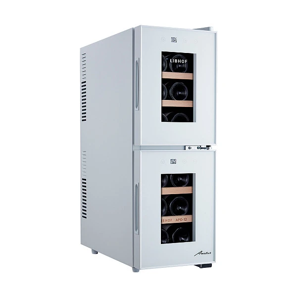 Винный шкаф двухзонный Libhof APD-12 white предназначен для хранения вина в оптимальных условиях (температура, влажность, защита от УФ излучения, вибраций и т. д.).