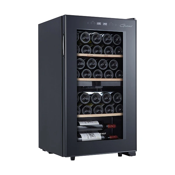 Винные холодильники серии «Gourmet» созданы для гурманов и настоящих ценителей вина. В камере шкафа поддерживается оптимальная температура, влажность и уровень освещенности, которые можно регулировать в зависимости от вида хранимого напитка. Высокие технологии предусматривают встроенную систему антивибрации, что отвечает требованиям хранения вина, и систему вентиляции и фильтрации, исключающую появление неприятного запаха. Система обогрева стекол поддерживает постоянную температуру внутри холодильника, даже если температура снаружи ниже, чем настроенная на панели винного шкафа.