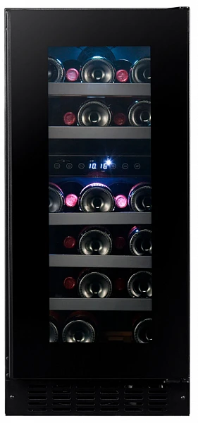 Две температурые зона (5-12, 12-20°C), вместимость до 32 винных бутылок.