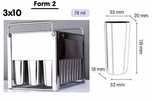 Форма для мороженого эскимо Koreco SSI 40 Eskimo form 2 предназначена для приготовления 30 эскимо объемом 78 мл в эскимогенераторе SSI 40 ESKIMO.