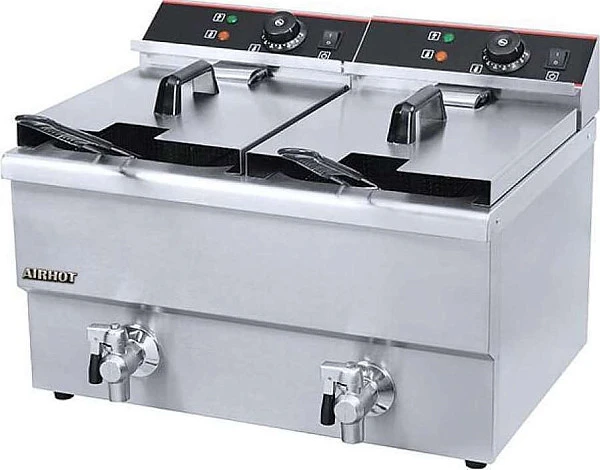 Фритюрница AIRHOT EF12+12T с краном предназначена для приготовления разнообразных кулинарных изделий во фритюре. Обеспечивает получение золотистой корочки у чебуреков, пирожков, картофеля фри, сыра, рыбных палочек, роллов и т.д. Отлично подойдет для любого формата предприятия общественного питания и домашнего использования.