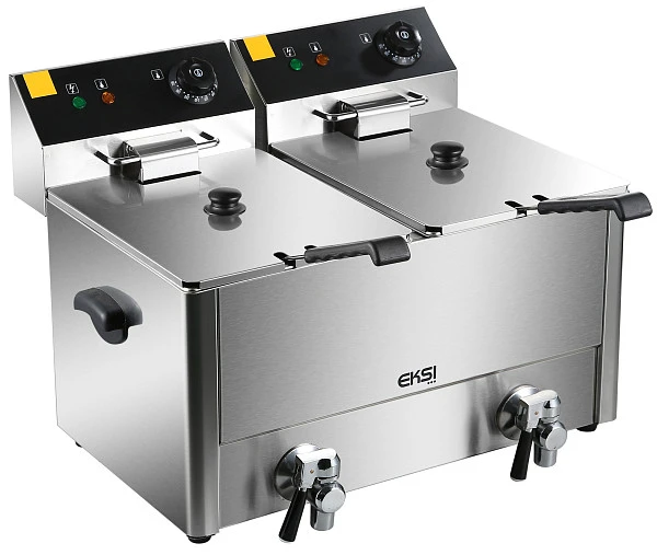 Фритюрница Eksi HEF-8LT-2 электрическая настольная предназначена для обжарки пищевых продуктов во фритюре с использованием специальной сетчатой корзины в большом количестве жира или масла.