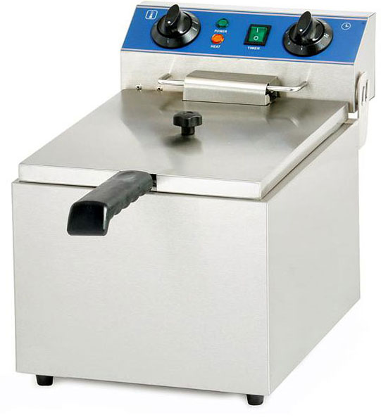 Температура фритюра регулируется в пределах 60-200оС. Оборудование дополнительно оснащено механическим таймером на 60 минут.
