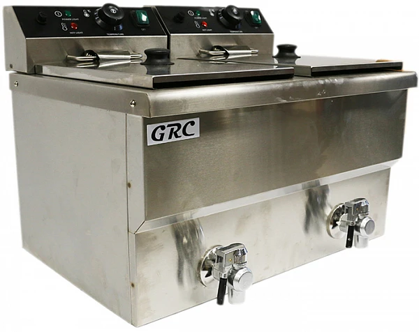 Фритюрница Grc HEF-12L-2 предназначена для жарки во фритюре с использованием специальной сетчатой корзины: чипсов, хвороста, рыбы, мяса, беляшей, пирожков, пончиков, овощей(лук), котлет по-киевски и других продуктов в большом количестве жира или масла на предприятиях общественного питания.