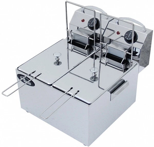 Фритюрница Grill Master Ф2ФрЭ предназначена для обжаривания разнообразных кулинарных и кондитерских изделий путем погружения их в большой объем горячего жира или растительного масла (фритюр) на предприятиях общественного питания и торговли.