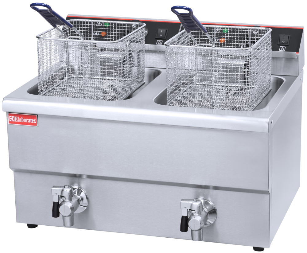 Фритюрница Hualian Machinery HEF-12L (2 емкости) предназначена для приготовления во фритюре (разогретом масле) различных блюд – картофеля фри, чебуреков, беляшей, пончиков, нагетсов и других продуктов из мяса, птицы и рыбы (в том числе в кляре), теста и овощей. Обеспечивает получение равномерной хрустящей корочки.