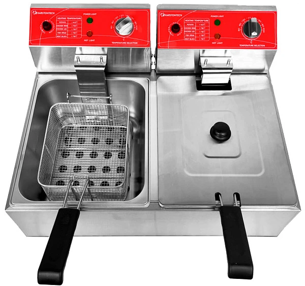 Фритюрница Karstontech KS-F6+6 настольная электрическая предназначена для приготовления в масле (фритюре) различных продуктов питания: мяса, рыбы, овощей и мучных изделий на предприятиях общественного питания и торговли.