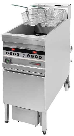 Контроллер RoboLabs позволяет максимально гибко настраивать режим работы фритюрницы, переключать фритюрницу в режим ожидания в периоды простоя и затем быстро выводить на рабочий режим. Данная опция способна значительно уменьшить интенсивность окисления масла. Кроме того, можно установить периодичность фильтрации масла и записать до 4 программ на каждую корзину.
