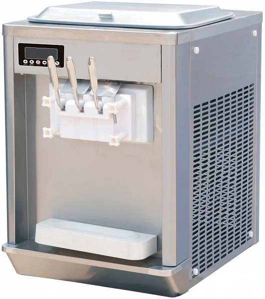 Оптимизированная панель управления обеспечивает эффективную работу даже на открытом воздухе. Дозатор на три рожка позволяет приготовить одновременно две смеси, различные по вкусу. Чтобы мороженое еще дольше оставалось свежим, возможны предварительное охлаждение, а также режим ночного хранения. Модель устанавливается на стол и обладает компактными размерами, поэтому ее удобно транспортировать. Корпус выполнен из нержавеющей стали, что гарантирует долгий срок службы и сохранение внешнего вида.
