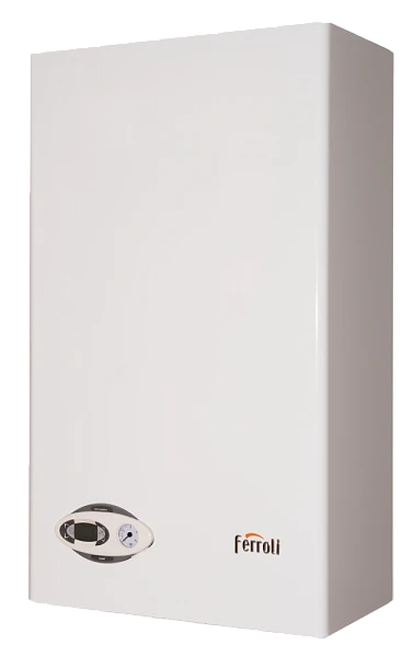 Газовый котел Ferroli Divabel F10 - настенный двухконтурный аппарат, зарекомендовавший себя, как один из самых качественных. Он без труда обеспечивает жилые помещения теплом в любое время года. Благодаря современной системе мониторинга его настройка не займёт много времени, а большой и удобный дисплей позволяет быстро считывать всю необходимую информацию.