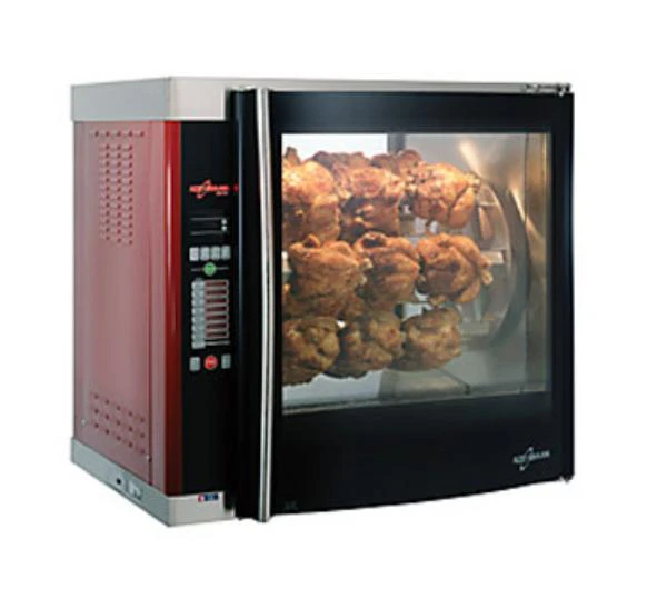 Приготовление мяса осуществляется путём его вращения на шампурах возле нагревательных элементов, обеспечивая, таким образом, равномерную прожарку с минимальными потерями полезных и вкусовых свойств продукта. Диапазон рабочих температур от 121 до 218 °С позволит вам подобрать оптимальный режим приготовления. Для обжарки куриного мяса в данной модели применяется сочетание конвекции и теплового излучения, а герметичная рабочая камера хорошо сохраняет тепло. Возможно одновременное приготовление до 28 кур (44 кг) на 7 шампурах. Благодаря имеющему дренаж (глубина 51 мм) поддону из нержавеющей стали, можно быстро избавиться от пригоревшего жира, стекающего в поддон с помощью специальных стоков. Для удобства использования и чистки гриля шампуры, поддон, диски для шампуров и стоки жира являются съёмными. Кроме того, предусмотрена внутренняя подсветка рабочей камеры, которая способствует более удобному наблюдению за процессом приготовления мяса, а также позволяет выгодно продемонстрировать продукт.