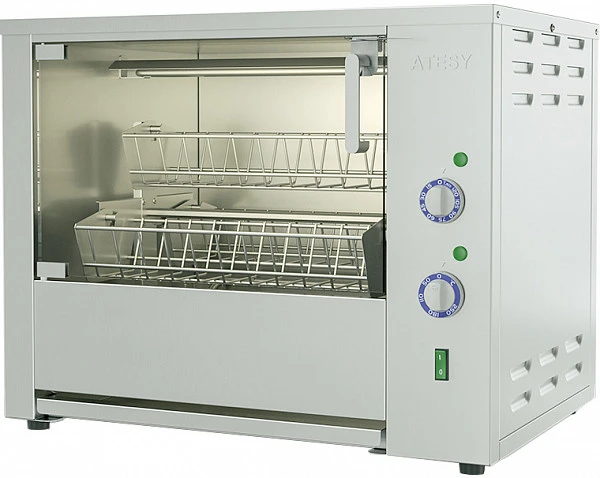 Гриль для кур Atesy Командор-4Э-Т предназначен для жарки тушек кур, цыплят, куриных окорочков, грудок и других продуктов на предприятиях общественного питания и торговли.
