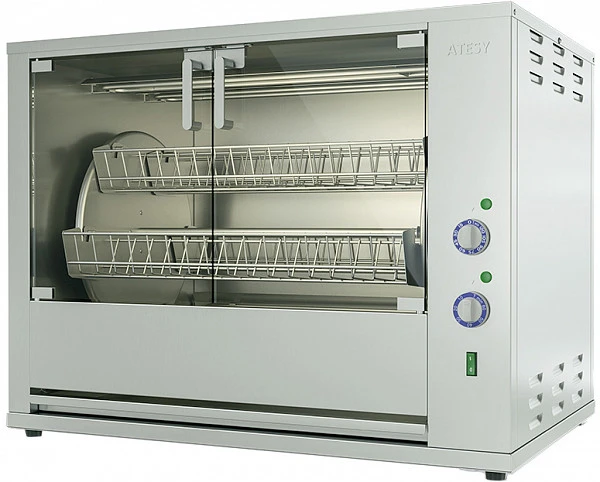 Гриль для кур Atesy Командор-6Э-Т (карусельный) предназначен для жарки тушек кур, цыплят, куриных окорочков, грудок и других продуктов на предприятиях общественного питания.