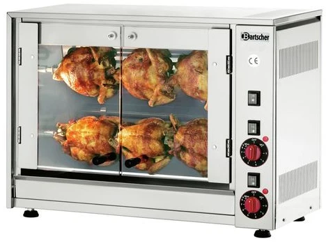 Гриль для кур Bartscher Р6 применяется в ресторанах фаст-фуд, супермаркетах и уличной торговли, принося его владельцу постоянный доход, а покупателю чувство удовлетворения от отведанных изысканных блюд, приготовленных с помощью данного гриля.