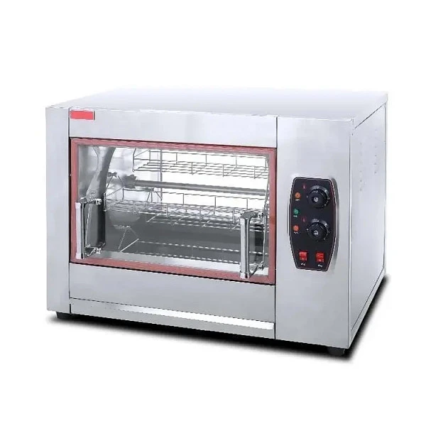 Гриль для кур Hualian Machinery HEJ-266 предназначен для приготовления кур-гриль, запекания тушек цыплят, куриных окорочков, грудок и другой аналогичной продукции. Подходит для оснащения заведений быстрого питания и супермаркетов. Кроме того, благодаря современному стильному дизайну он отлично впишется в интерьер в качестве вращающейся витрины для презентации продуктов гриль и барбекю.