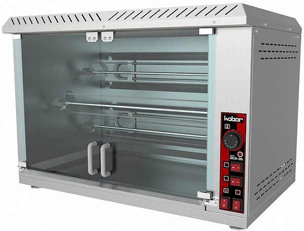 Гриль для кур Кобор GC2-3S шампурного типа используется на предприятиях общественного питания и торговли для жарки целых тушек цыплят, грудок, окорочков и других продуктов.