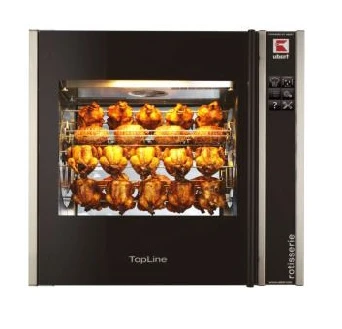 Гриль для кур Ubert RT 403 предназначен для использования в ресторанах быстрого питания, супермаркетах и уличной торговле для жарки цыплят, куриных окорочков, крылышек и грудок.