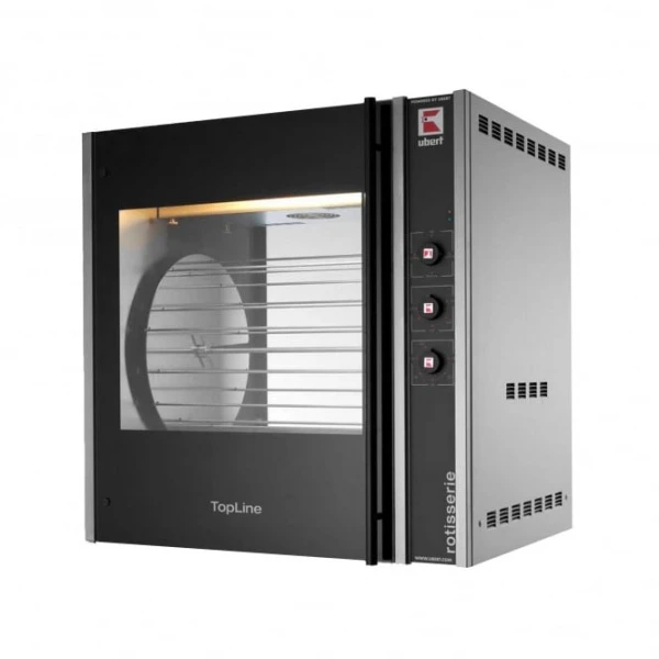 Гриль для кур Ubert RT 405 предназначен для использования в ресторанах быстрого питания, супермаркетах и уличной торговле для жарки цыплят, куриных окорочков, крылышек и грудок.