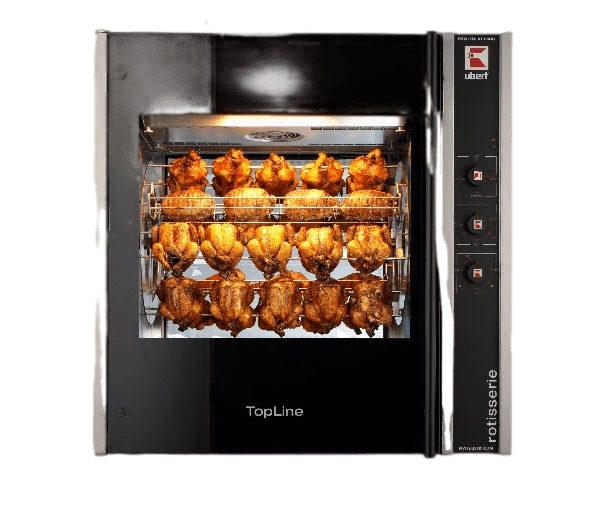 Гриль для кур Ubert RT 406 предназначен для использования в ресторанах быстрого питания, супермаркетах и уличной торговле для жарки цыплят, куриных окорочков, крылышек и грудок.