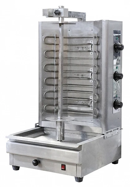 Гриль для шаурмы Ergo VZK-890 с автоматическим вращением вертела используется в системе уличной торговли благодаря своей высокой производительности, простоте и надежности применения, а главное, наглядности в приготовлении продукта.