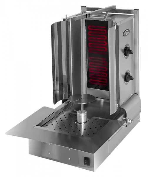 Гриль для шаурмы Grill Master Ф2ШМС/1 (21208) предназначен для быстрого приготовления мясной начинки для одноименного блюда (лаваш или пита с мелко нарезанным, поджаренным на установке мясом с приправой) в небольших бистро, кафе, заведениях фаст-фуда.