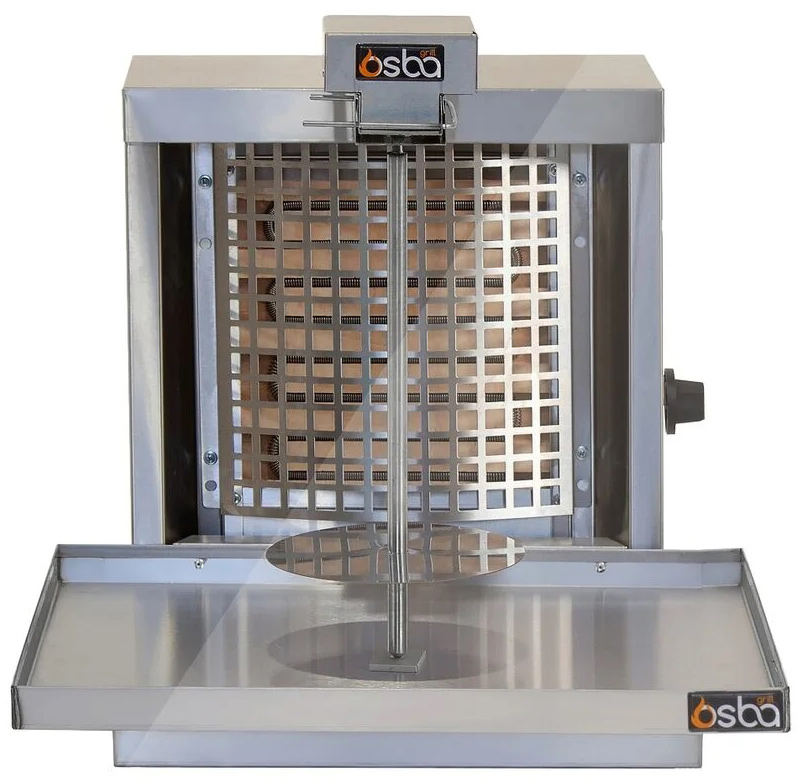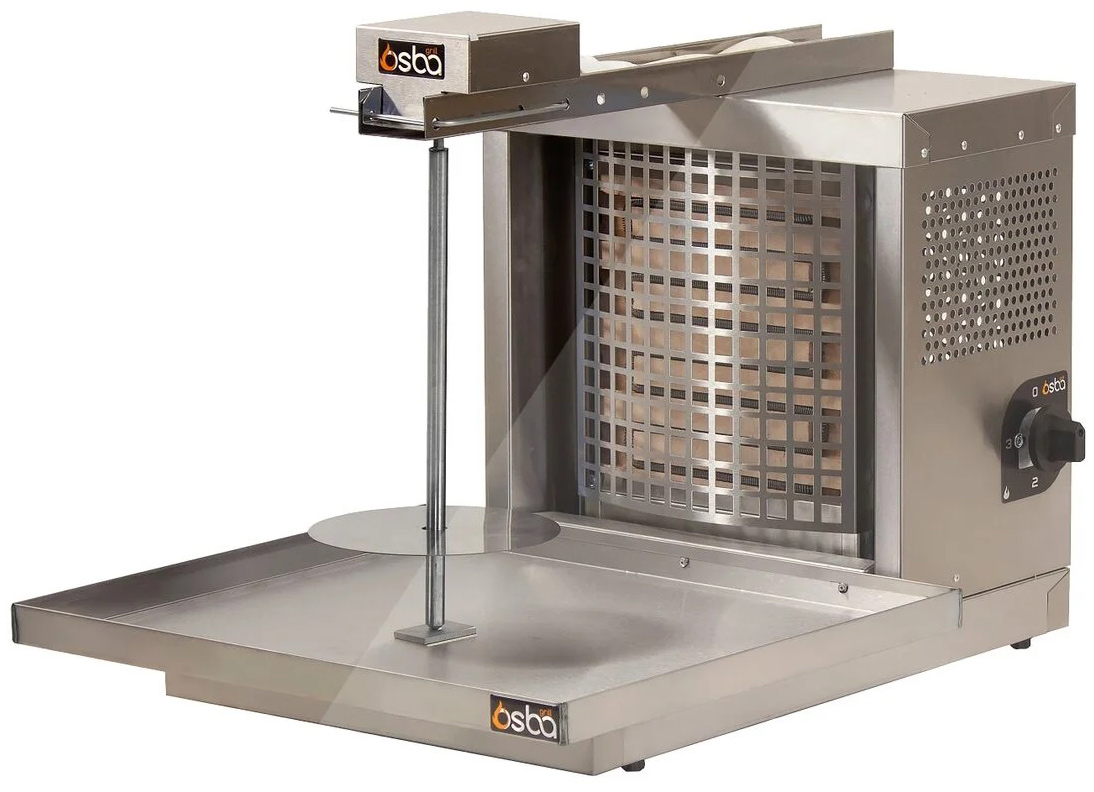 Гриль для шаурмы Osba 3.1K (с верхним приводом) используется на кухнях различных заведений общественного питания: от ресторанов до точек быстрого питания, для приготовления мясной части блюда шаурма. Гриль предназначен для обжарки мясных заготовок цилиндрической формы, которые размещаются на вертикальный вертел, обеспечивая равномерное приготовление.