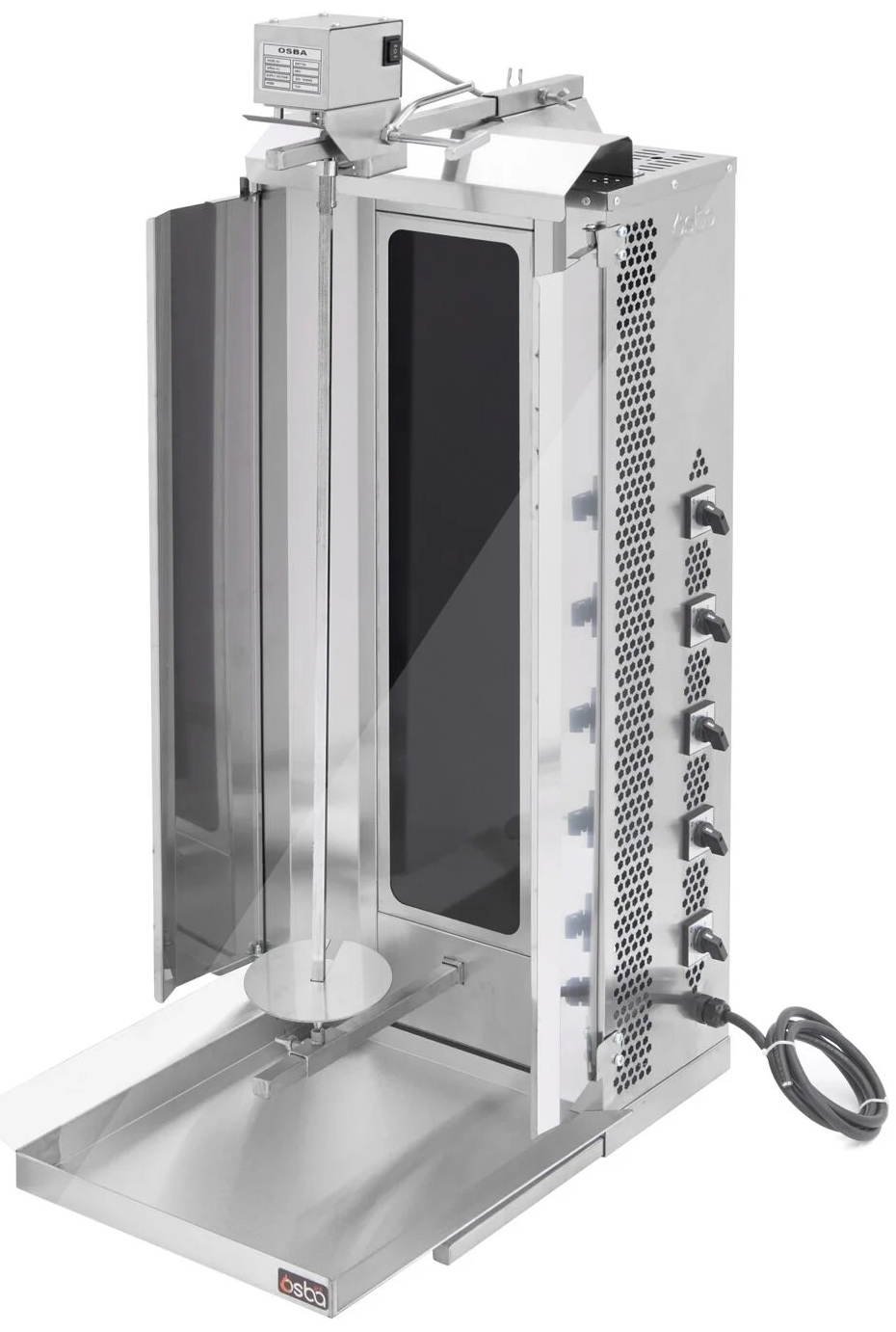 Гриль для шаурмы Osba MED-05E используется на кухнях различных заведений общественного питания: от ресторанов до точек быстрого питания, для приготовления мясной части блюда шаурма. Гриль предназначен для обжарки мясных заготовок цилиндрической формы, которые размещаются на вертикальный вертел, обеспечивая равномерное приготовление.