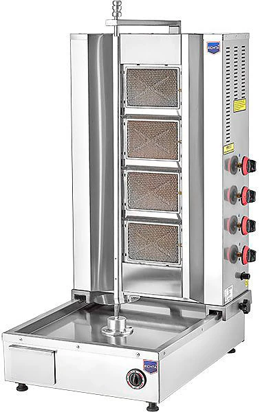 Данное оборудование производит обжарку мяса (курицы, свинины, говядины), сформированного в специальные заготовки цилиндрической формы и размещенного на вертикальный вертел.